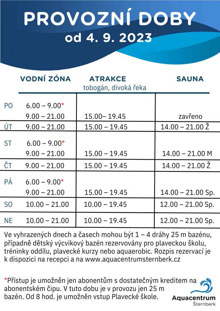 Rozpis rezervací plaveckého bazénu zde (bude odkaz)